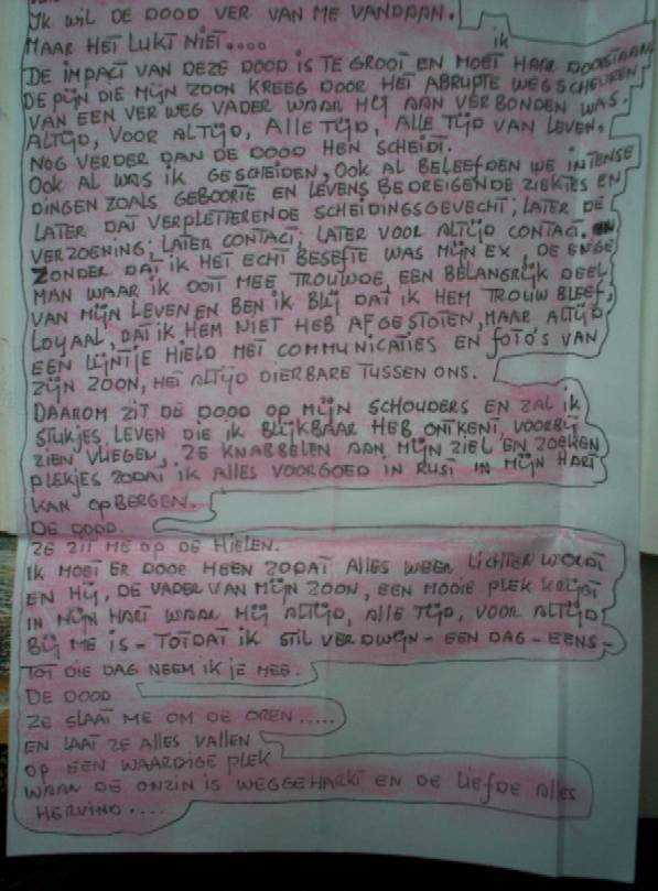 papier in zijn zak en klopt en streelt mijn trillende handen. Als onze